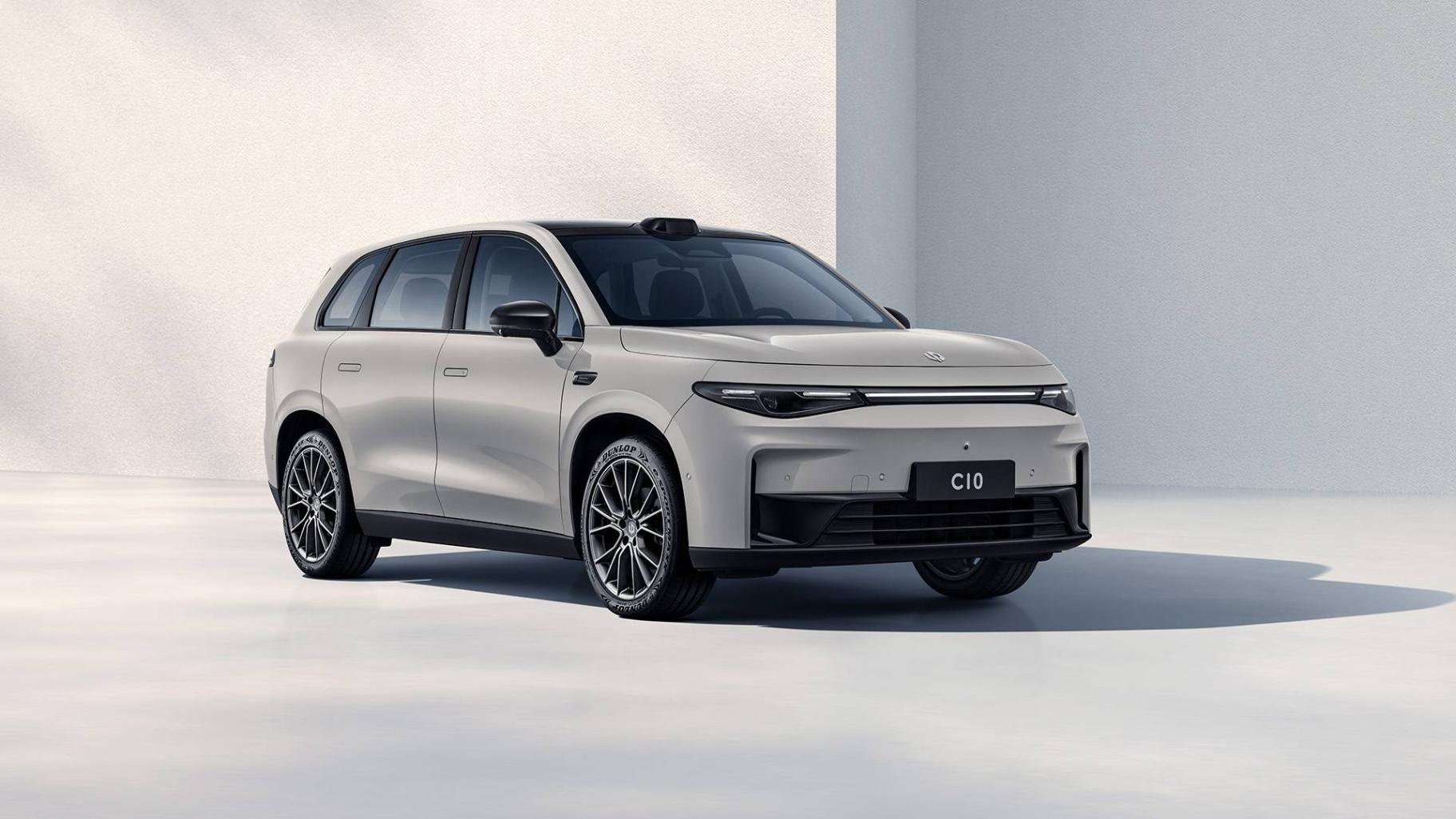 4739x1900x1680mm的車身尺寸,2825mm的軸距,零跑C10定位為大五座中型SUV。通過卡片鑰匙刷后視鏡或是用手機App來解鎖車輛,全系標配了隱藏式門把手和18英寸輪圈。