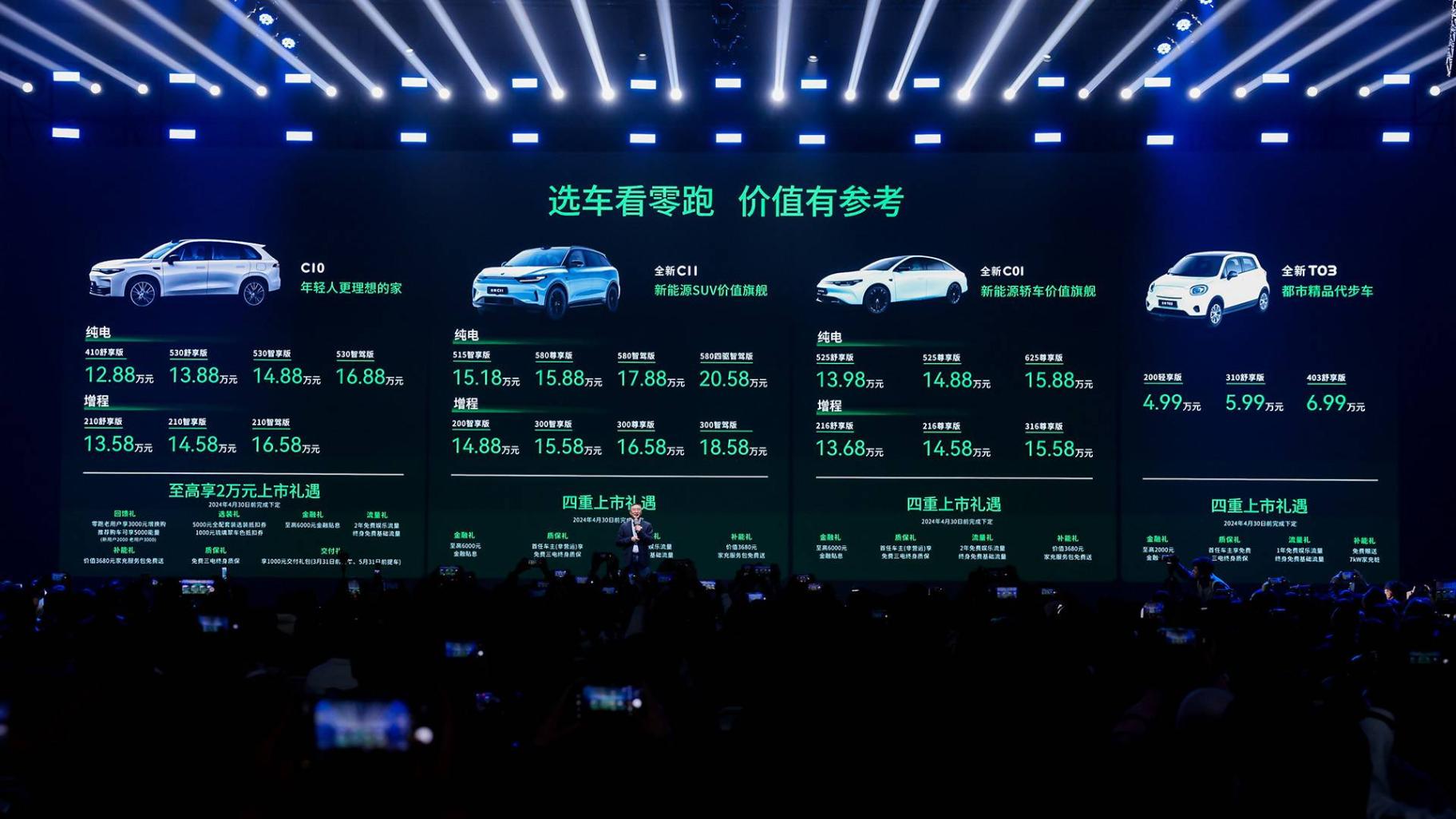 零跑全系車型,主打的就是高性價比的親民路線,SUV全系都在瞄著理想打,C10、C11和C16,對標的就是理想的L6、L7和L8。冰箱、彩電、大沙發它全有,而且售價還能對半砍。增程車型綜合續航1000km+,還擁有純電動車型進行補充,讓消費者可選擇的余地更大。