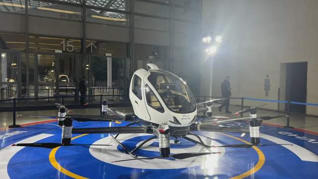 2025長安汽車全球伙伴大會主會場現場,設置未來出行探索區及技術展品展區。在未來出行探索區,靜態展示著一臺飛行汽車,這是長安對未來出行方式的全新探索。