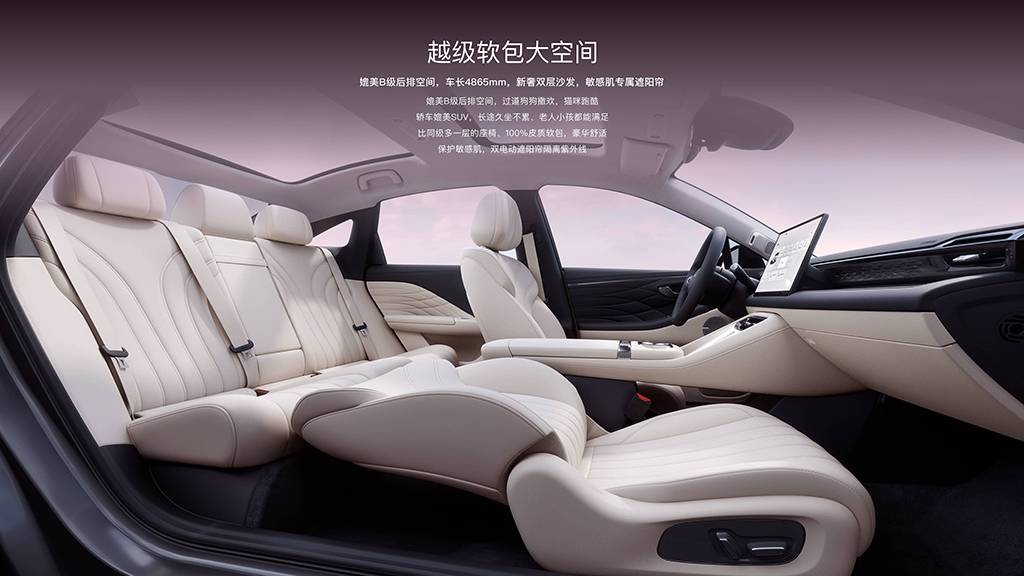 走進(jìn)車內(nèi),埃安 RT的座椅采用了意式沙發(fā)設(shè)計(jì)的“蝴蝶座椅”,采用雙層高密度海綿填充,帶來(lái)充分的支撐性和包裹感。同時(shí)具備多種舒適功能,如一鍵放平、通風(fēng)和加熱等,前排座椅可以放平變成貴妃椅,后排空間非常寬敞,頭部、腿部空間都超過(guò)940mm,比很多B級(jí)車還好。此外,前排座椅完全放倒后,秒變豪華軟包大床房,適合情侶出游或家庭露營(yíng)時(shí)使用。