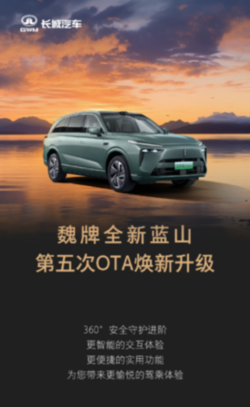 魏牌全新藍山良好的口碑離不開出色的產品綜合實力,更源于常用常新的價值體驗。距今全新藍山已經完成了5次OTA升級,升級頻率遠超新勢力品牌。尤其在最新一次的OTA升級中,魏牌全新藍山優化升級30余項功能,新增哨兵模式、側盲區影像顯示、車機端魔術貼等重點功能9項,將在日常出行場景中給到用戶更智能、便捷實用的體驗。