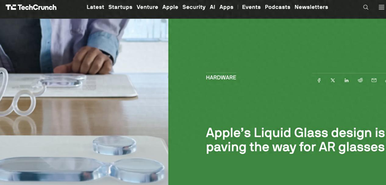 6月14日消息,據外媒TechCrunch報道稱,在近日的蘋果 2025 年全球開發者大會(WWDC)上,蘋果公司宣布了十多年來最重大的軟件設計變革——液態玻璃。這一視覺上的徹底革新為傳聞中的蘋果 AR 眼鏡奠定了基礎,該眼鏡預計將于明年亮相。