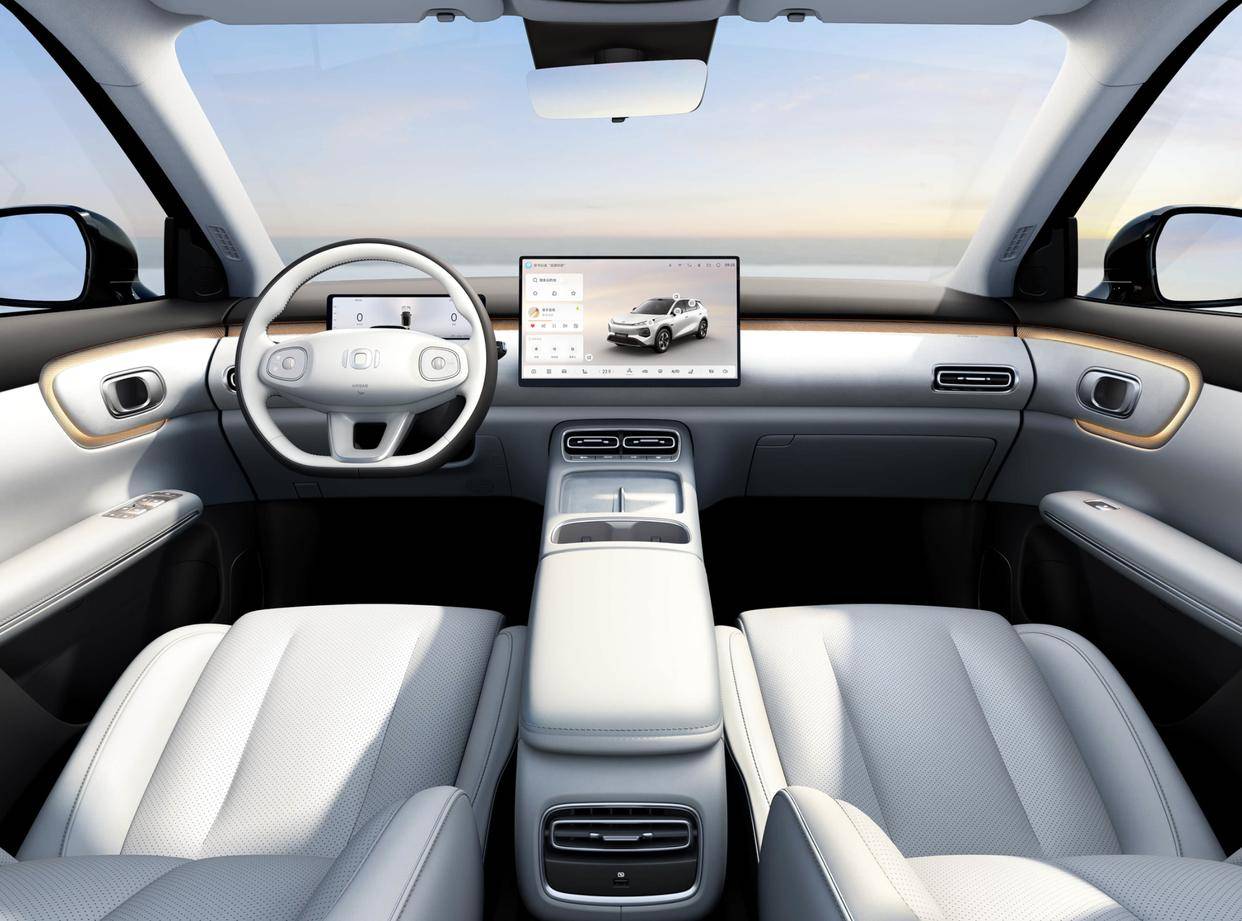 首次亮相了長安全新啟源Q05內飾官方圖片,也讓消費者眼前一亮。內飾采用了大面積米白色軟性材質鋪陳,還有黑色硬塑料材質、環繞中控臺的金色飾條以及銀質門把手、銀質的空調出風口邊框,提升了整車的高級感。具體來看,新車將會配備懸浮式中控屏以及液晶儀表的組合,雙拼色的三輻式方向盤以及懷擋設計與長安啟源A06十分相似,造型別致的空調出風口、手機無線充電、雙杯架,呈現出簡潔干凈的氛圍。新車后排配有空調出風口,可翻折中央扶手、三個獨立頭枕等配置。
