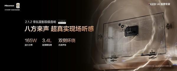 音質(zhì)方面,海信E7Q聯(lián)合法國品牌帝瓦雷共同調(diào)校,搭載2.1.2聲道側(cè)環(huán)繞重低音系統(tǒng)。100英寸版本配備3.4升大容積低音炮,可做到165W峰值功率與低至45Hz的低頻下潛。除此之外,該電視還標配4GB+64GB內(nèi)存組合,支持98% DCI-P3廣色域,并通過了潘通色彩+杜比視界雙重認證。