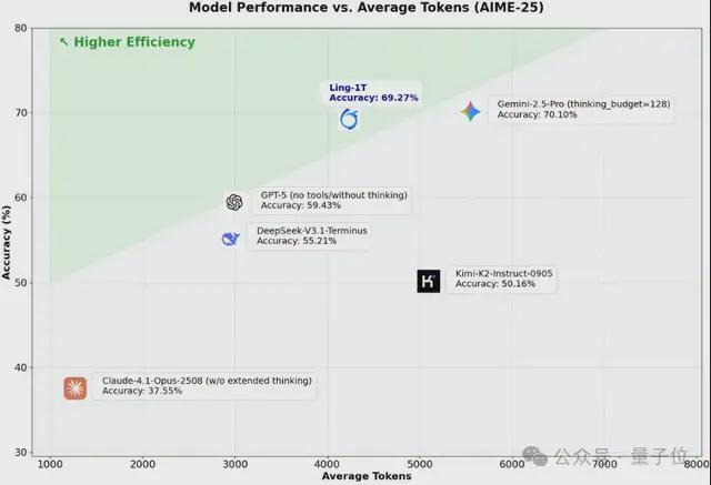 不僅如此,Ling-1T還展現出高效思考與精準推理的優勢。例如,在競賽數學榜單AIME 25上,Ling-1T就超越了一眾模型獲得最優表現。