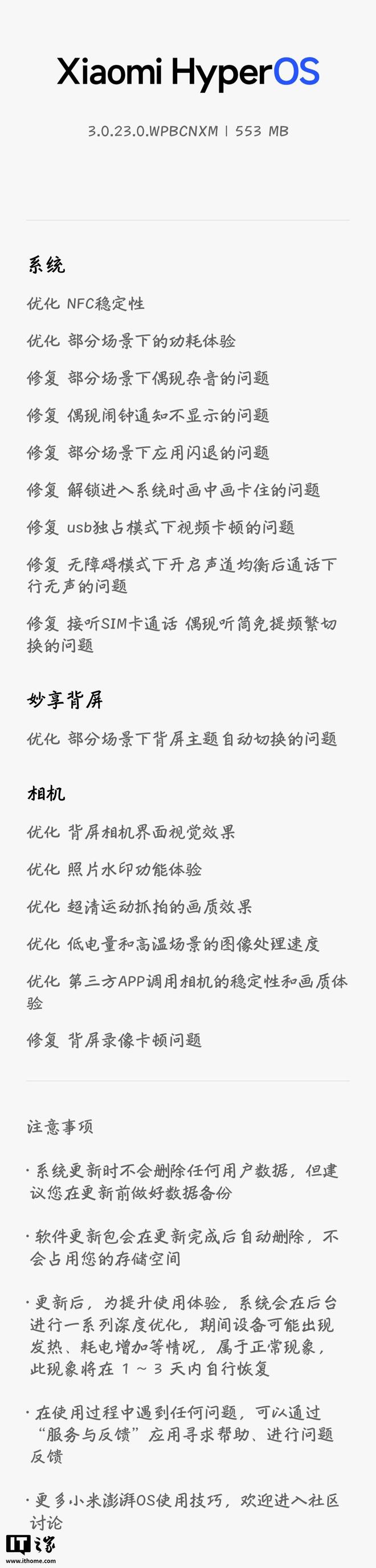 10 月 18 日消息,小米 17 Pro Max 手機(jī)現(xiàn)已獲澎湃 3.0.23.0.WPBCNXM 更新,主要優(yōu)化系統(tǒng)穩(wěn)定性,并修復(fù)妙享背屏主題自動(dòng)切換問(wèn)題,大小 553MB。