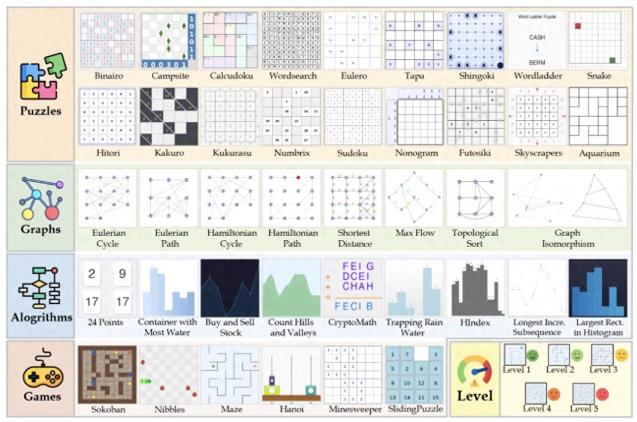 它不再是簡單的看圖說話或數(shù)學(xué)計算,而是包含了42種橫跨算法、圖論、謎題和策略游戲的超高難度任務(wù),例如: