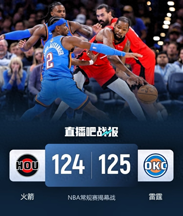今天上午,NBA新賽季揭幕戰(zhàn),火箭與衛(wèi)冕冠軍雷霆鏖戰(zhàn)至第二個(gè)加時(shí)賽,最終比分124-125,火箭1分惜敗