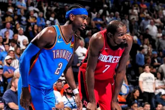 第三節(jié)開(kāi)始,火箭重新建立兩位數(shù)優(yōu)勢(shì),雷霆憑借連續(xù)的三分球迅速追上。