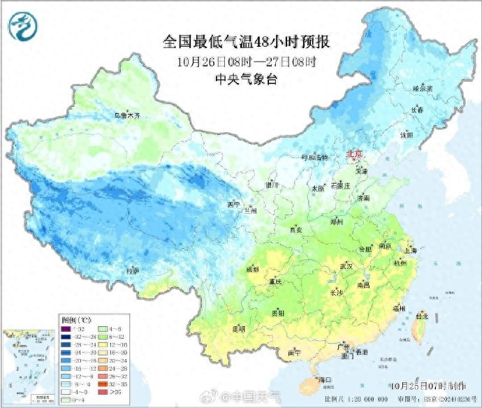 今天(10月25日)起,新一股冷空氣將開始影響我國北方,未來三天北方多地將再度刷新氣溫新低,太原、西寧等地或首次降至冰點及以下,內蒙古東北部、黑龍江等地迎明顯降雪。此外,今明兩天青藏高原降雪持續,出行需注意交通安全。