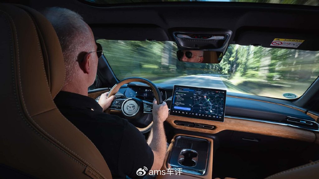 “請踩下制動踏板以啟動”,當副駕駛門剛被打開一條縫時,揚聲器便傳來溫柔的提示。這聽起來似乎多余,卻恰好暗示了馬自達的轉型。過去,這個品牌在電動車領域一直“踩著剎車”,專注于大排量無渦輪發動機、搭載轉子引擎的插混車,以及直列六缸柴油機。