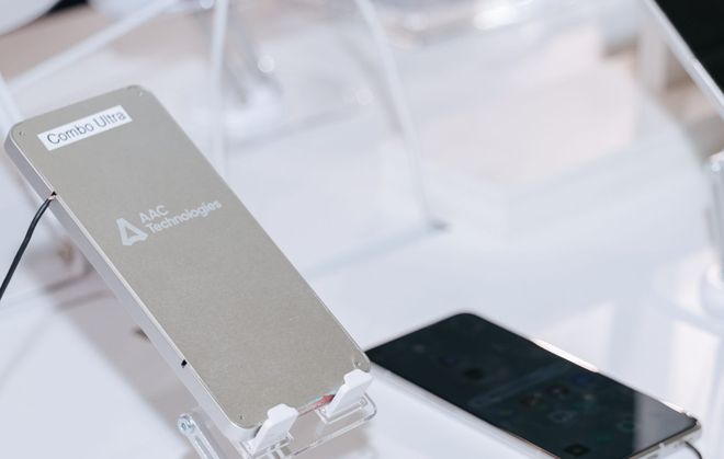 在觸覺領(lǐng)域,瑞聲科技發(fā)布了業(yè)內(nèi)首個超薄側(cè)鍵方案和Combo Ultra聲學(xué)馬達(dá)二合一產(chǎn)品。瑞聲科技自研的超薄馬達(dá)模組,可以提供更接近真實(shí)的物理反饋。除了聲學(xué)馬達(dá)二合一,瑞聲科技推出了小模組方案,把聲學(xué)、支架、天線、磁吸充電整合到一起,據(jù)稱已經(jīng)形成大規(guī)模生產(chǎn)制造能力。